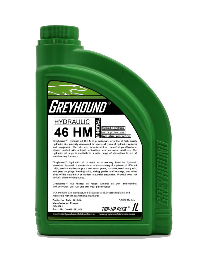 This Greyhound Lubricant 46 Hydraulic Oil HM-46 is 1L.