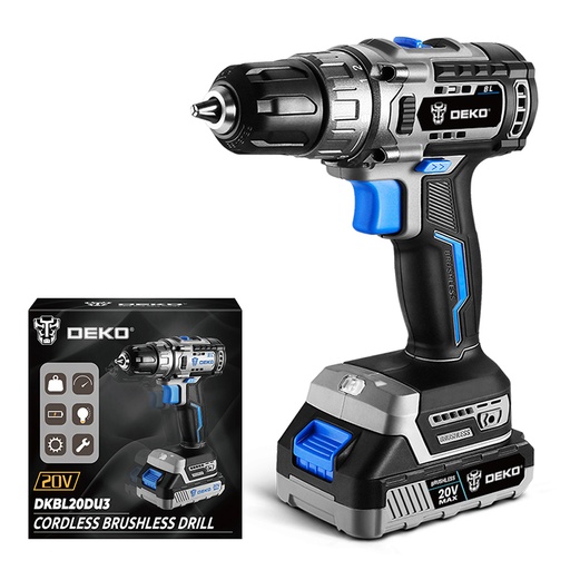 DEKO Tools Brushless Drill with 1 pc2.0Ah Lithium-ion Battery and 1 pc Charger