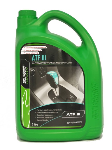 5L Greyhound Lubricant G-Moto ATF3 Automatic Transmission Fluid For power steering systems and hydraulic systems.