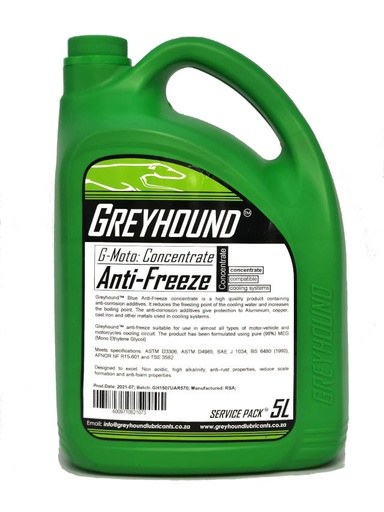 5L Greyhound Lubricant G-Moto Anti Freeze Coolant Concentrate For passenger cars, commercial and heavy-duty vehicles.