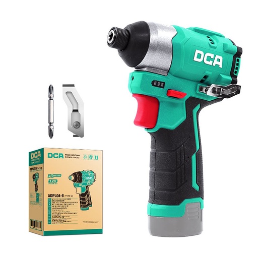 DCA Tools 12V Cordless Brushless Impact Driver Kit With 2.0Ah*2 & Charger